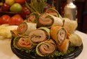 Imported and domestic cheeses such as Brie, Cheddar, smoked Gouda, Muenster, Havarti, Mozzarella and Gourmandaise are displayed on a tempting platter and accompanied by a variety of speciality crackers.